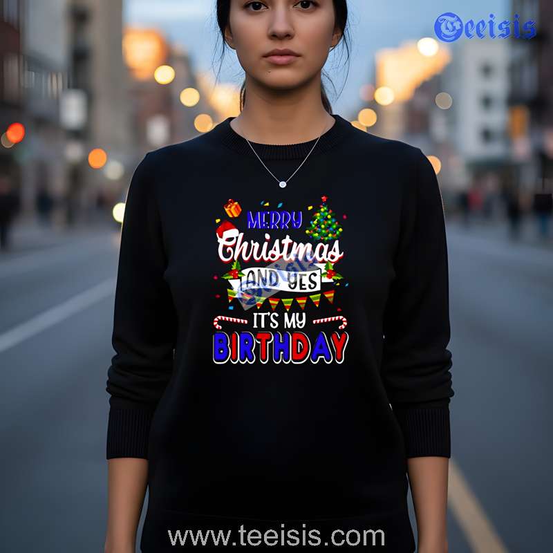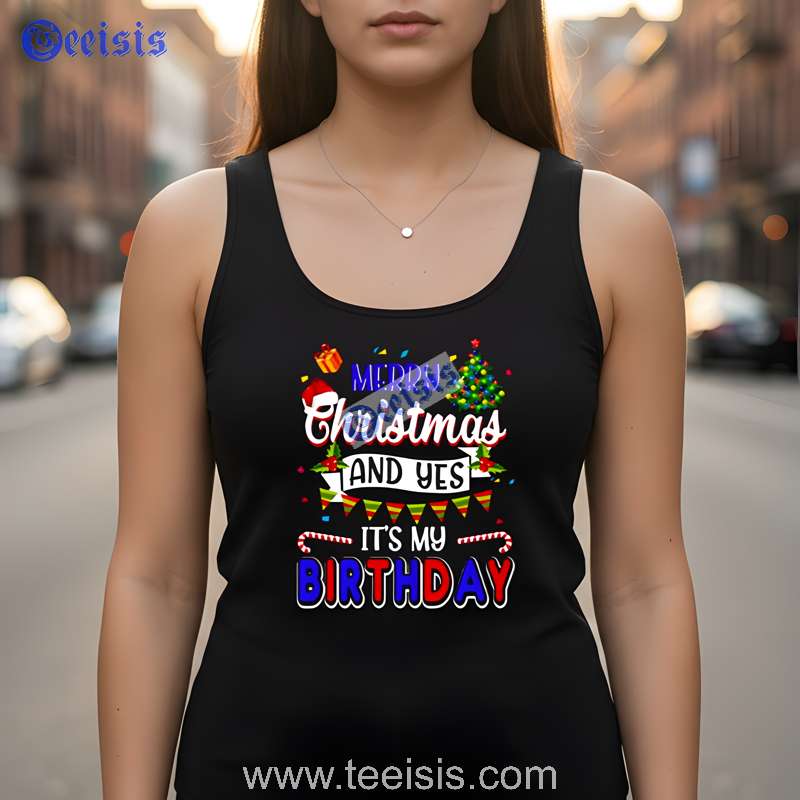 Key features "Merry Christmas And Yes Its My Birthday Black Unisex Shirt"