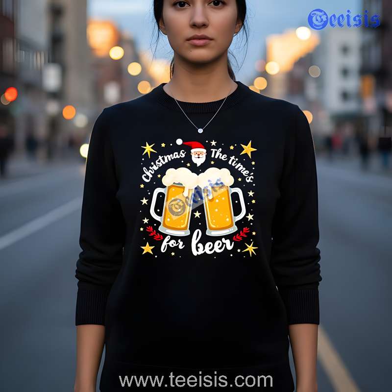 Key features "Santa Claus Christmas The Time For Beer Graphic Tee"