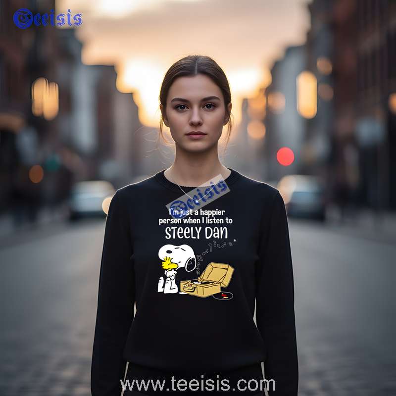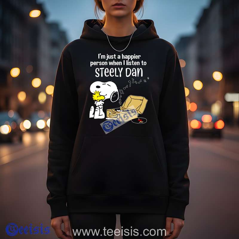 Key features "Snoopy Steely Dan Black Men Shirt Happier When Listen To"