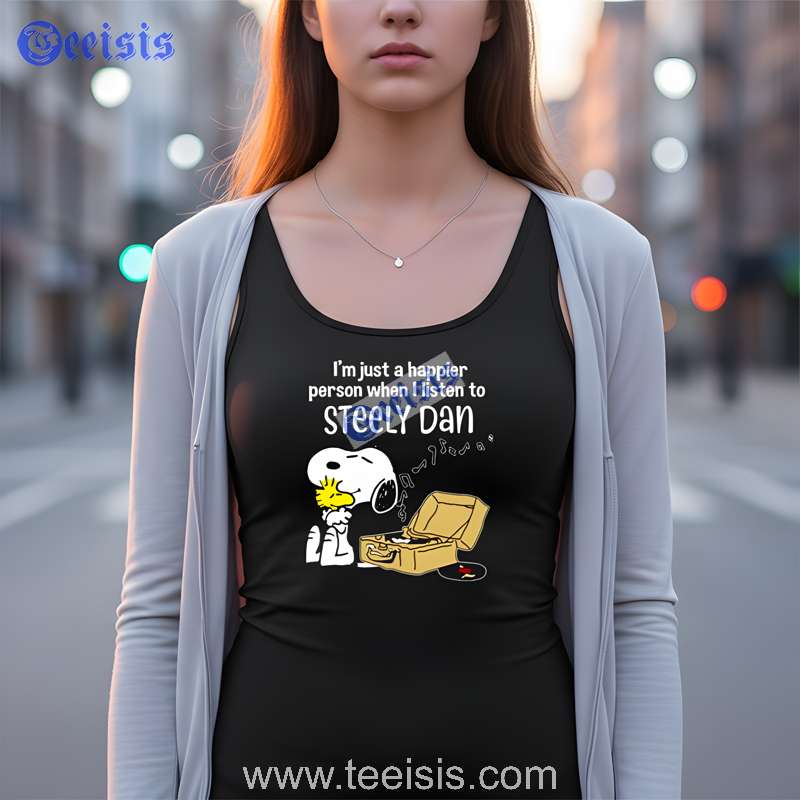 The Snoopy Steely Dan Black Men Shirt Happier When Listen To brings together musical nostalgia and beloved cartoon charm right from the first sentence. Crafted from 100% cotton, the shirt provides a soft, breathable feel that keeps you comfortable through everyday wear, concerts, hangouts, or relaxed weekends. Its durable cotton construction ensures long-lasting quality, retaining shape and softness through repeated washes.